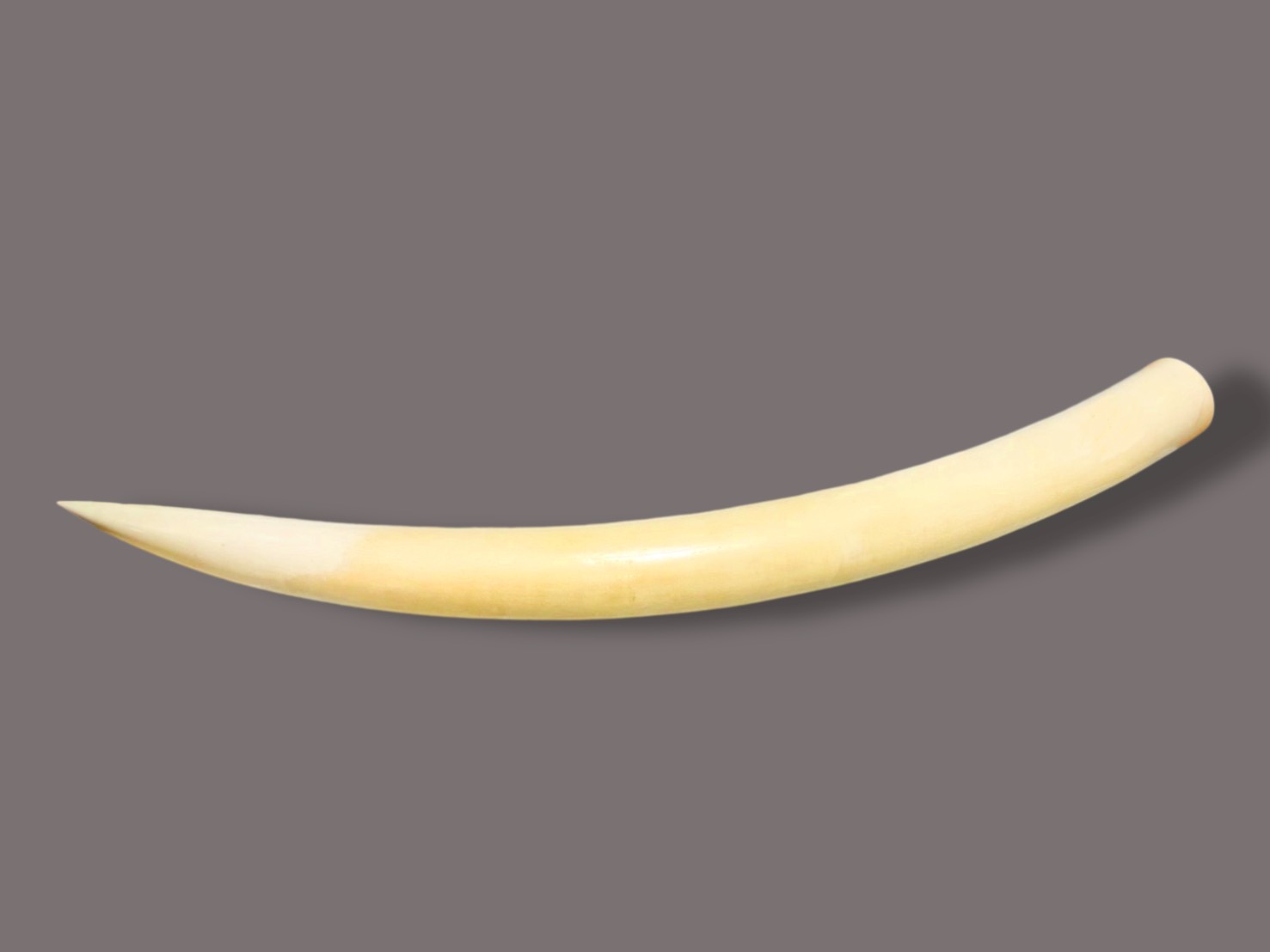 このたび、一整根の状態で保存状態が非常に良好な象牙作品をお買取りいたしました。 本品は牙根から牙先まで全体が揃っており、切断や二次加工の痕跡は見られず、象牙本来の自然な形状と美しい曲線をそのまま残した、極めて希少性の高い一点です。 表面の色味は落ち着きがあり、経年による自然な風合いが感じられる一方、目立ったひび割れや乾燥による損傷は確認されず、同種作品の中でも特に保存状態に優れています。 また、必要な登録手続きが適切に行われていることを確認したうえで、現行法令を遵守し、慎重に査定・買取を実施いたしました。 本作品は、完全な形状の保持、サイズ感、保存状態、そして市場における希少性を総合的に評価し、高い査定評価となった、非常に貴重な象牙一整根の買取実績です。