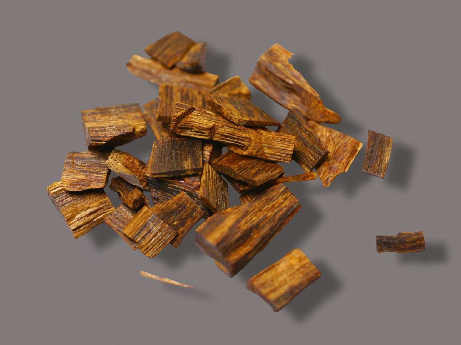 品名:伽羅チップス 点数:1点(チップ状複数片) 香木の最高峰とされる伽羅を、使いやすいチップ状に仕立てたお品でございます。 木目は緻密で油分を感じさせ、伽羅特有の深みと透明感を併せ持つ香気が期待される内容です。 聞香や焚香に適した形状で、少量ずつ用いることができる点も実用的です。 香質・状態ともに良好で、香道愛好家・香木収集家の双方から評価された買取実績となりました。